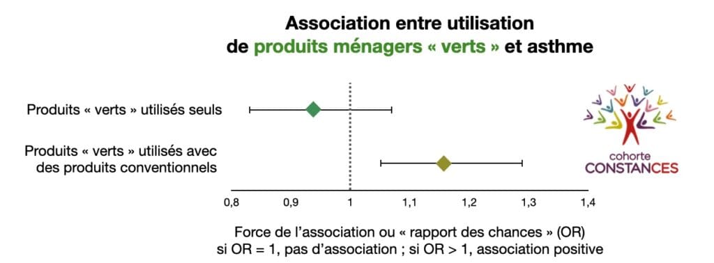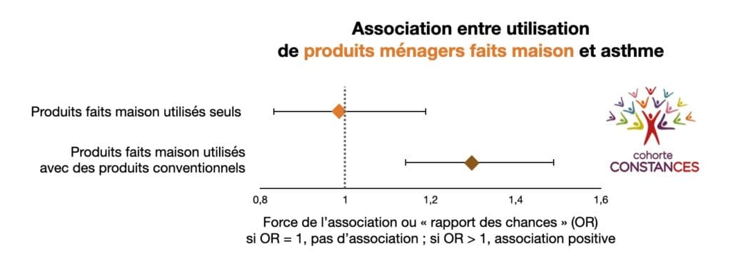 Aucune association entre l’utilisation de produits « verts » et faits maison avec l’asthme n’est apparue, lorsque ces produits sont utilisés hebdomadairement sans usage concomitant d’irritants ou de sprays (dits conventionnels). Par contre, lorsque ces produits sont co-utilisés avec des produits irritants ou sous forme de sprays, une association significative est observée. « Cela nous a permis de conclure que l’usage des produits écologiques et faits maison ne semble pas présenter de risque pour l’asthme » indique la chercheuse.
