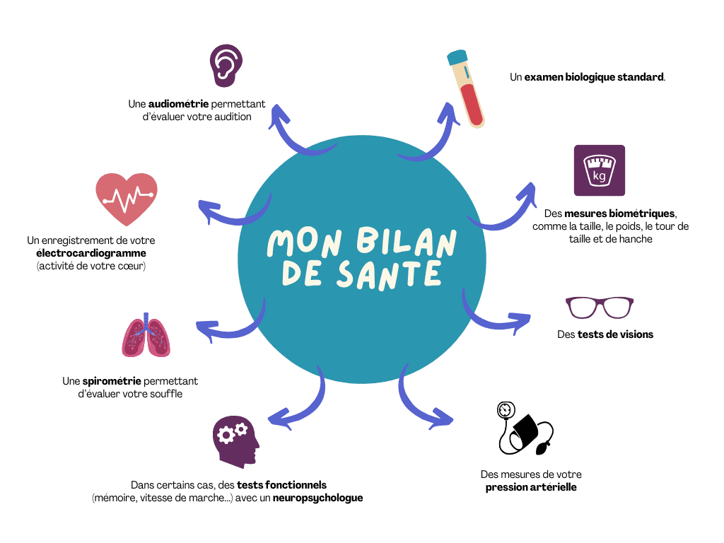 Les volontaires de Constances sont régulièrement invités à passer un bilan de santé complet dans un centre d’examen de santé de la Sécurité Sociale. Pour les personnes de 45 ans et plus, ce bilan peut être accompagné d’un bilan cognitif et physique